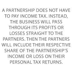Instead, the business will pass through its profits or losses straight to the partners. Then the partners will include their respective share of the partnership’s income or loss on their personal tax returns.