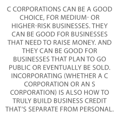 They can be good for businesses that need to raise money. And they can be good for businesses that plan to go public or eventually be sold. Incorporating (whether a C corporation or an S corporation) is also how to truly build business credit that’s separate from personal.